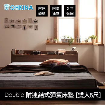 【OHKINA】日系附床頭櫃-插座的矮床組(附連結式彈簧床墊)_臺灣尺寸雙人5尺(2色)床架-橡木白