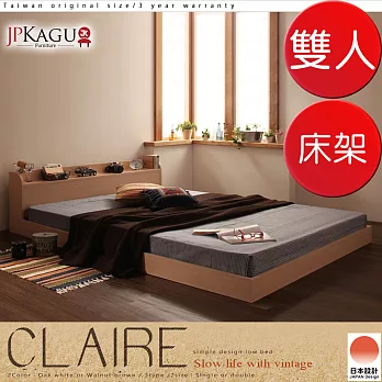 JP Kagu 臺灣尺寸質樸附床頭櫃-插座貼地型低床架-雙人5尺(二色)橡木白